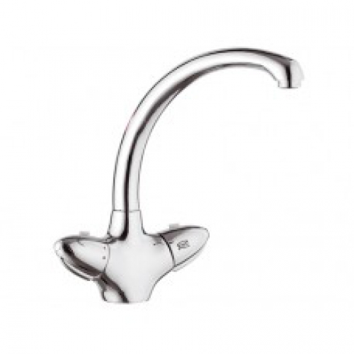 THERMOSTATIC SINK MIXER with 38° safety push button and high movable casted spout, luxury type |